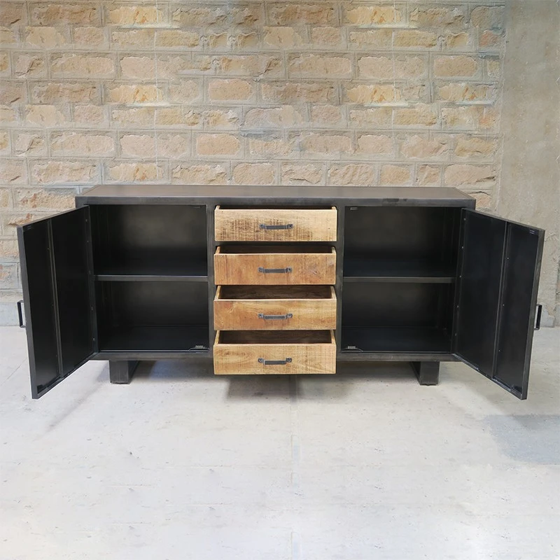 Buffet Métal Et Bois Jodhpur 2 Portes 4 Tiroirs