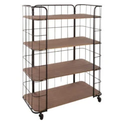 4 niveaux en bois + roulettes en métal.
